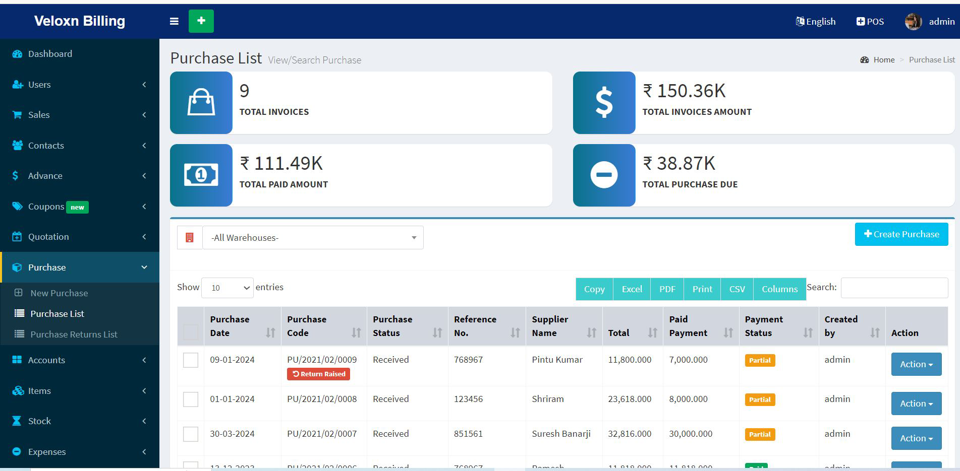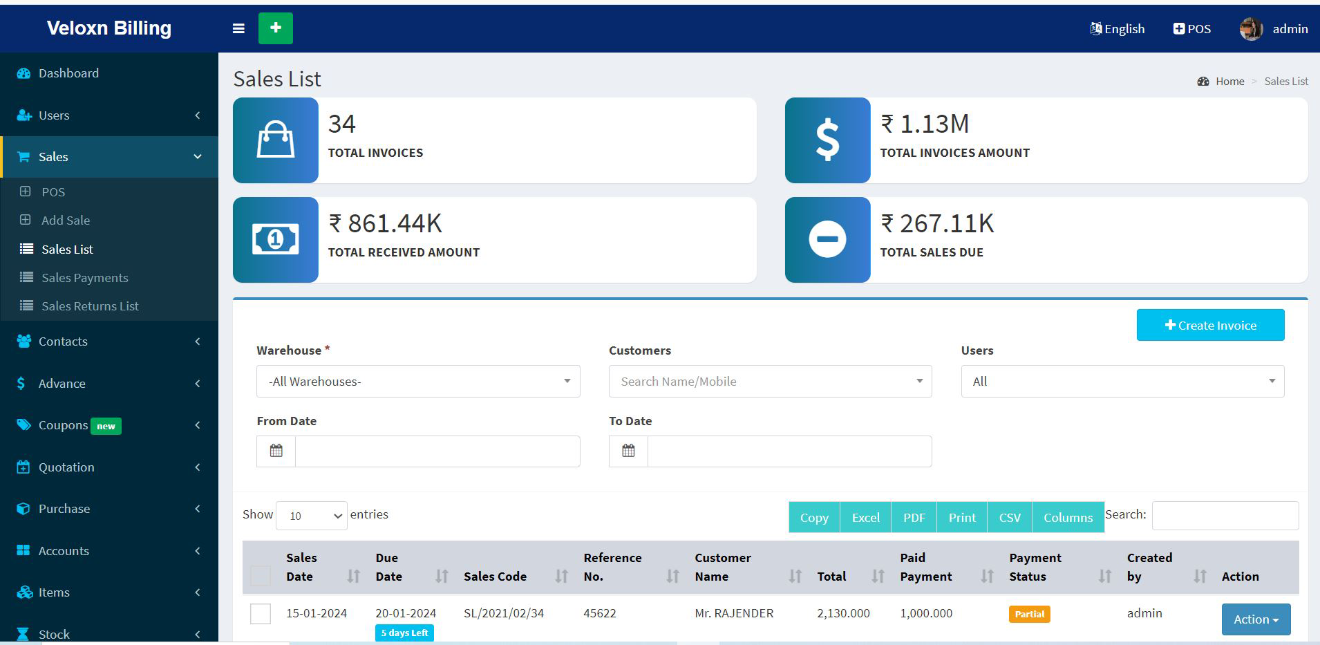 VeloxnInvoice Reports