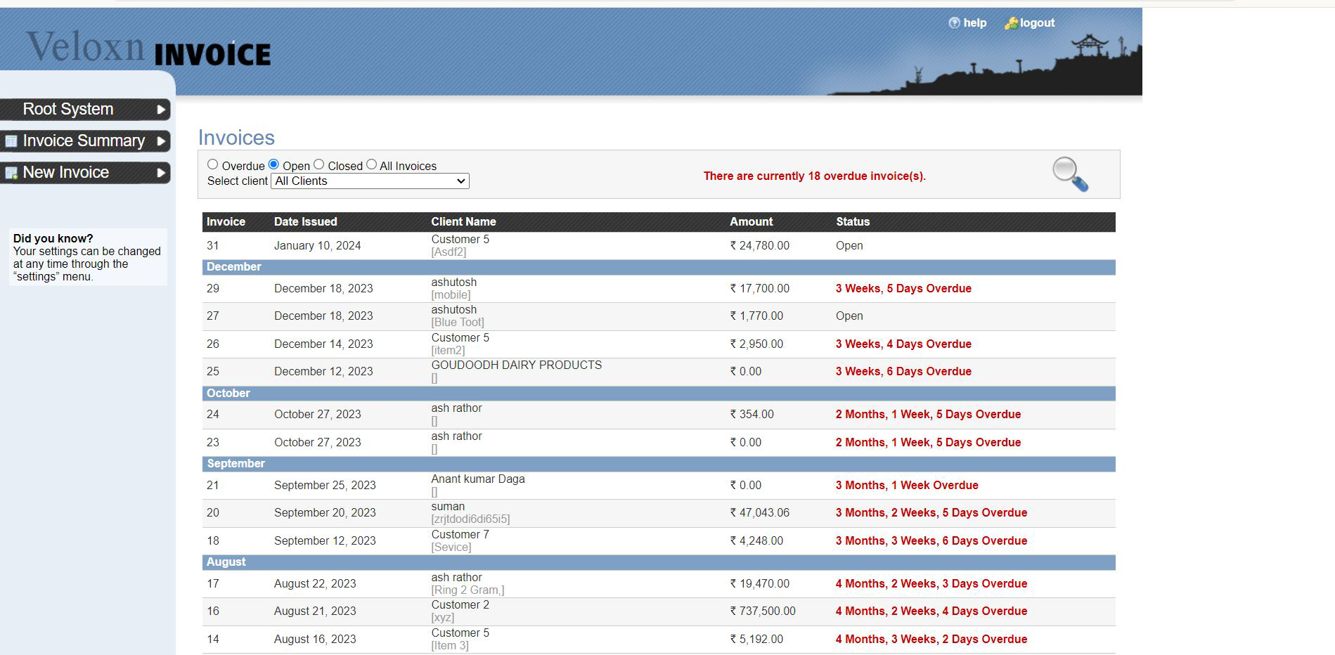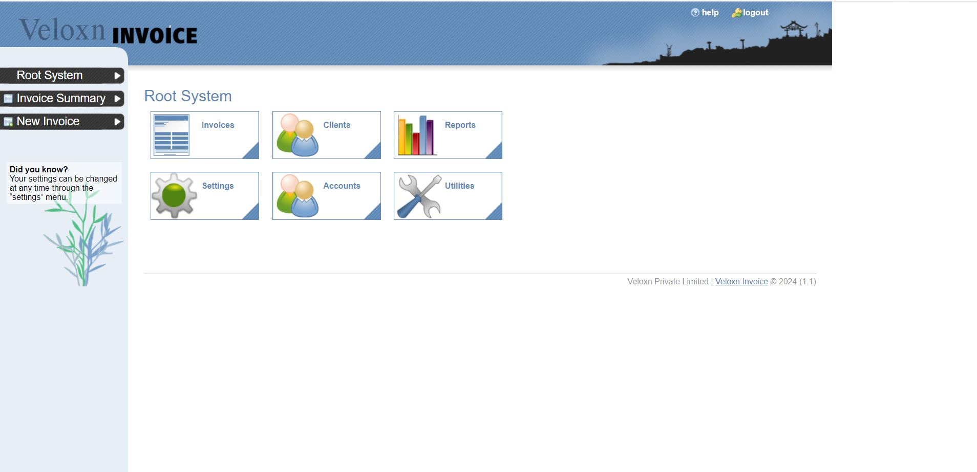 VeloxnInoice Setting