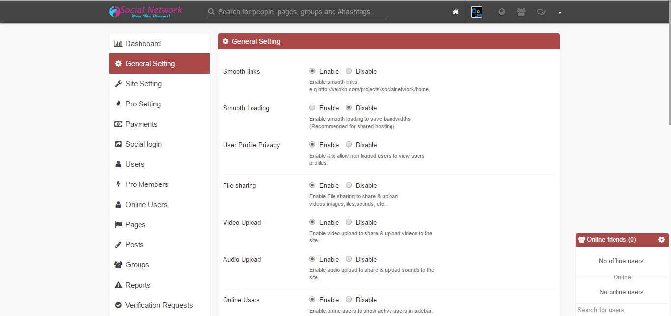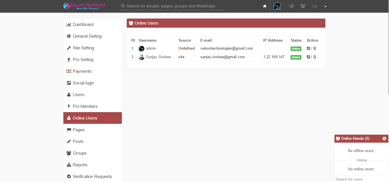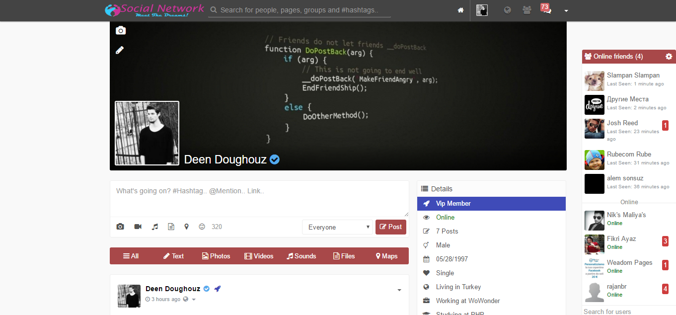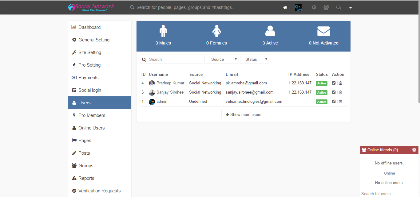 URL - http://veloxn.com/projects/socialnetwork/