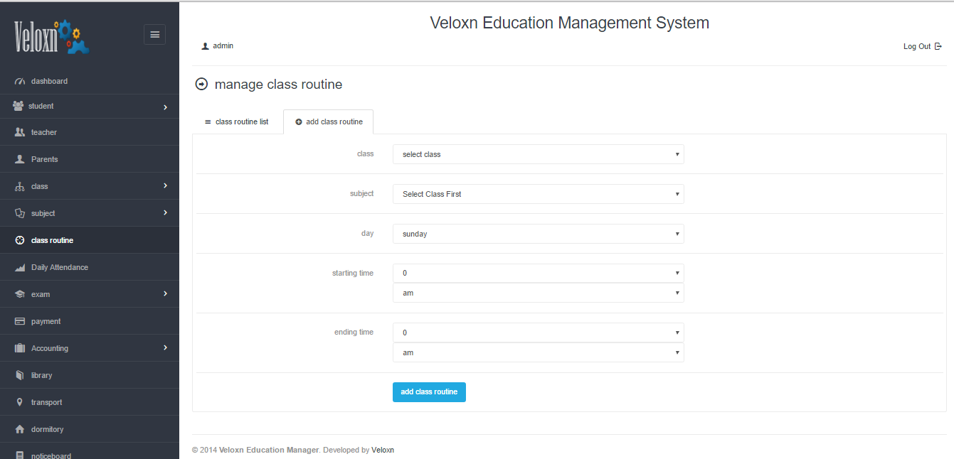 Admin Class Routine